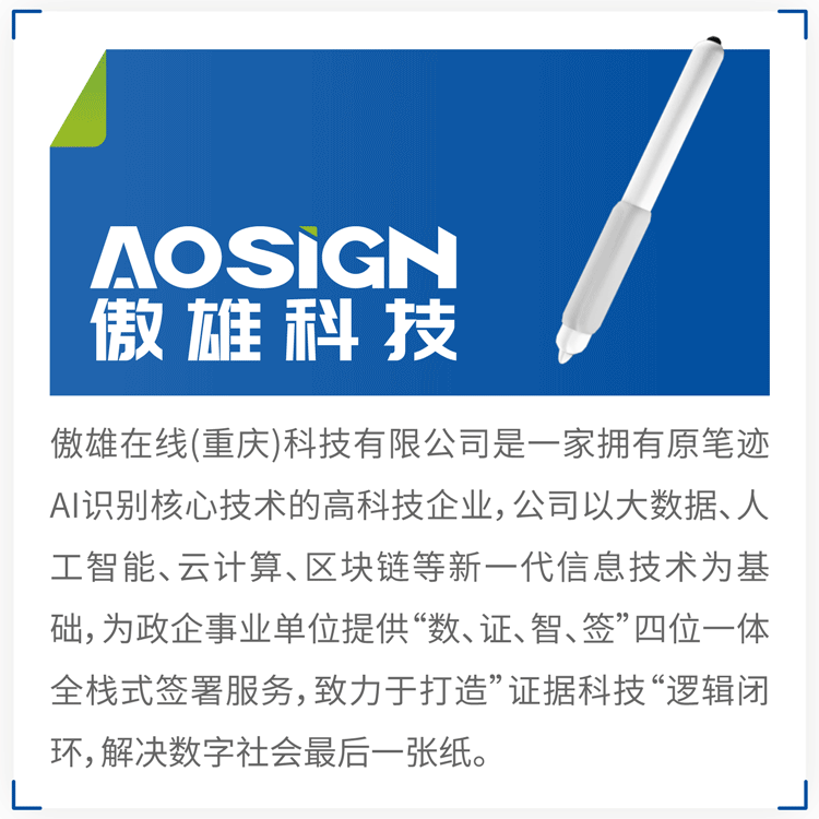 依托原笔迹电子签名、电子印章等技术,为政企用户提供安全可靠的一站式智能签署服务和全程无纸化解决方案,解决政企办公中纸质流转效率低下、纸质业务过程监管难、成本高、纸质档案管理难等问题。