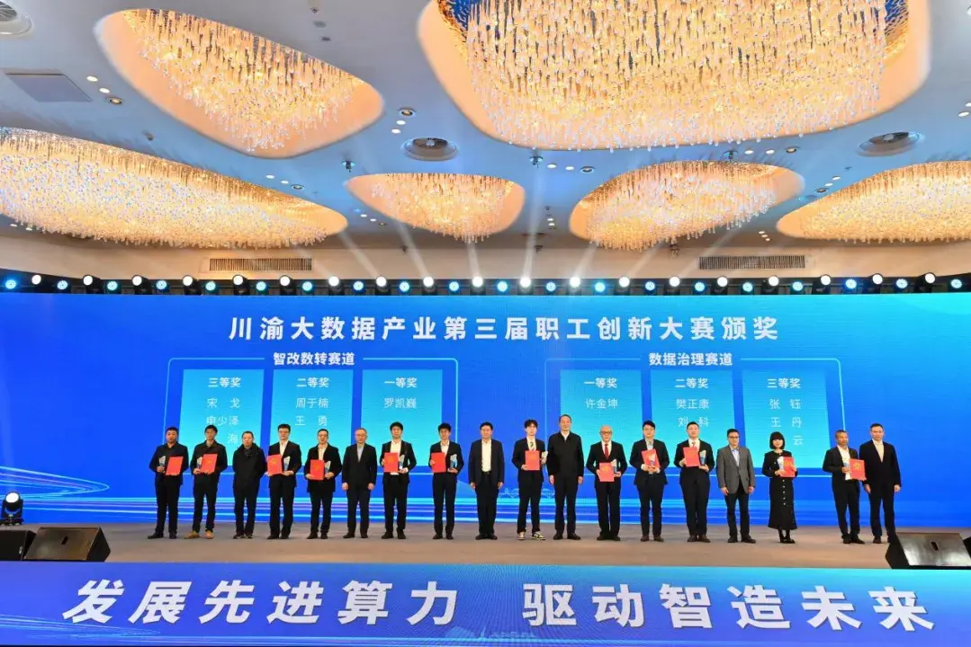 会上,四川省政协副主席尧斯丹,雅安市委书记夏凤俭,工业和信息化部信息技术发展司巡视员傅永宝,四川省总工会副主席彭闯,重庆市总工会巡视员刘满林,四川省大数据产业联合会会长蒋成为“川渝大数据产业第三届职工创新大赛”一、二、三等奖获奖者颁奖。