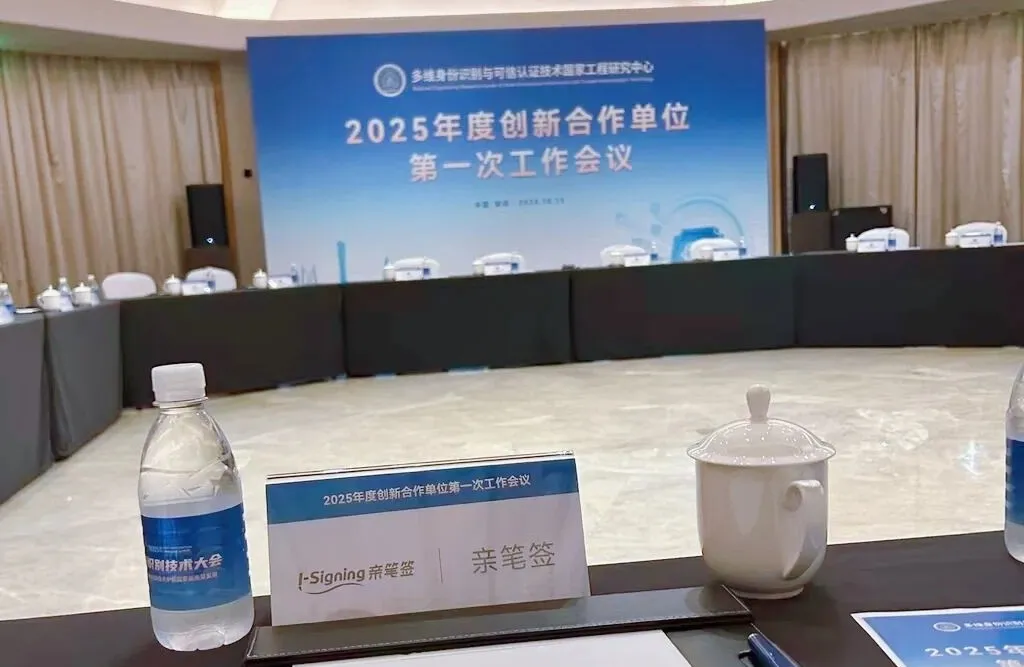 亲笔签副总经理黄勇、技术总监刘科、产品总监徐伟等一行受邀出席大会,并参加了同期举行的创新合作单位第一次工作会议。此次授誉标志着亲笔签数字笔迹技术获得国家层面权威认可,未来将在国家数字身份基础设施建设中承担更为关键的角色。