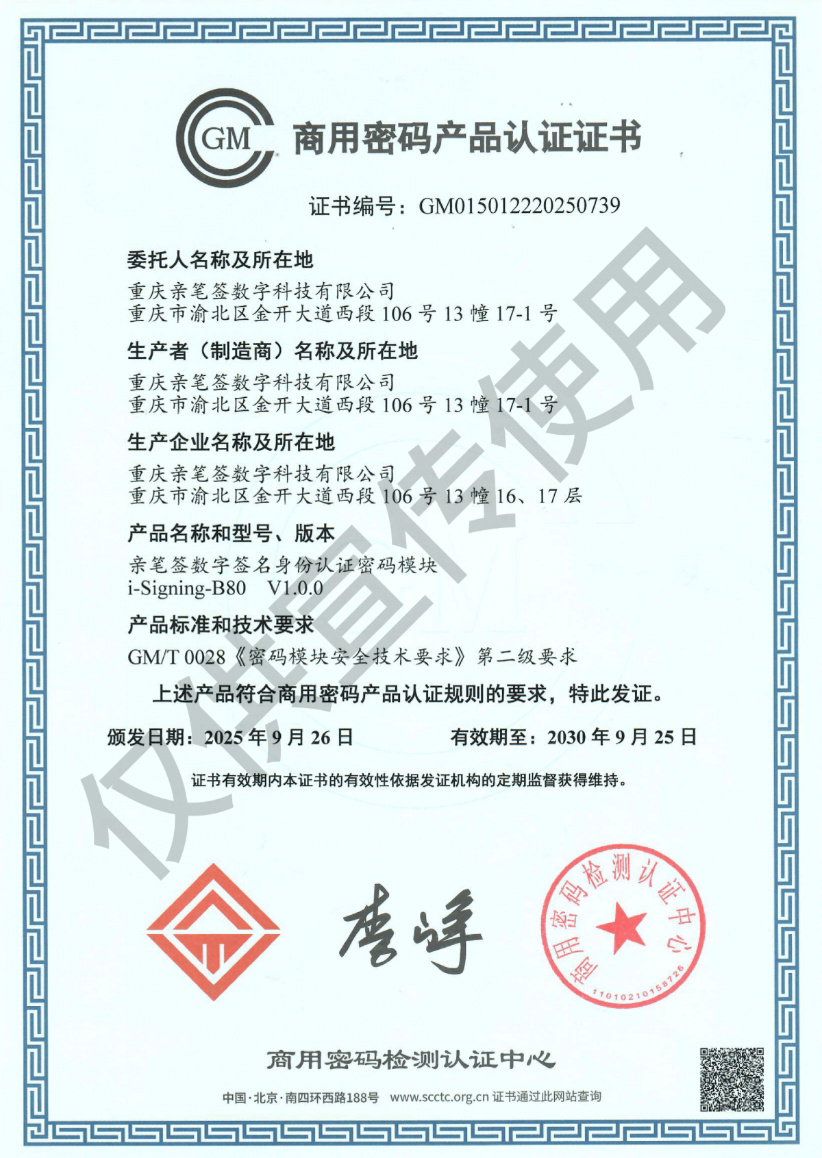 近日,亲笔签数字签名身份认证密码模块历经严格检测,荣获商用密码产品认证(证书编号:GM015012220250739),“笔迹即密码”的时代来了!